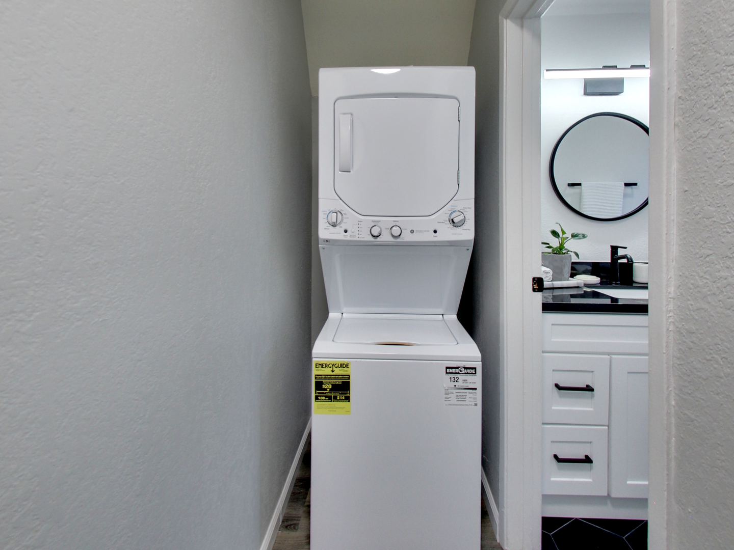 .) Ceiling fan & mirrored closet doors – Spacious enough for a king-size bed!